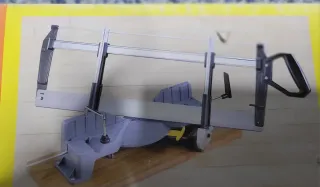 Sierra de ingletar TRT para cortes precisos. - Base de plástico resistente. - Guías de metal. - Mango ergonómico.