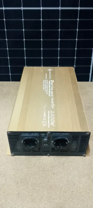 Inversor de corriente USADO de onda senoidal pura de 2500W. - Marca: Solartronics - Potencia: 2500W nominales. 5000w pico - Tipo de onda: Onda Pura (Pure Sine Wave) - Salida AC: 220-240V~ - Incluye dos tomas de corriente AC y un puerto USB. 45cm largo 25cm ancho 10'5cm alto 6kg aprox SÓLO SE ENTREGA EN MANO EN NUESTROS ALMACENES DE OCAÑA TOLEDO BAJO CITA PREVIA disponemos de mas modelos de inversores Axpert Voltronic ingeteam kostal solax masterpower victron fronius goodwe deye luxpower etc placas solares usadas y nuevas, baterias Agm 2v 6v 12v litio reguladores de carga pwm y mppt kits solares a medida de aislada autoconsu