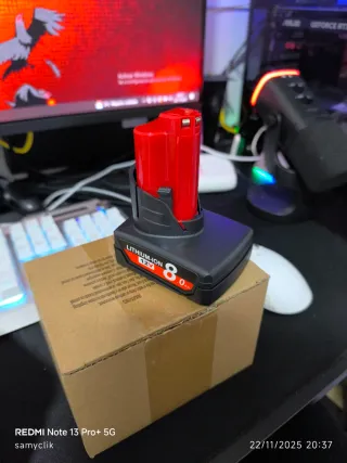 Batería de repuesto para herramientas Milwaukee M12. - Capacidad de 8Ah. - Diseño compacto y ligero.