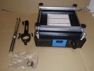 Placa de precalentamiento modelo 853A. Placa calentamiento placa base Placa móvil Placa trabajo calor Estación precalentamiento - Pantalla digital azul. - Indicador HIGH TEMP. WARNING. - Incluye soporte ajustable y varilla metálica. Para reparación de placas bases, móviles, componentes electrónicos etc