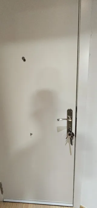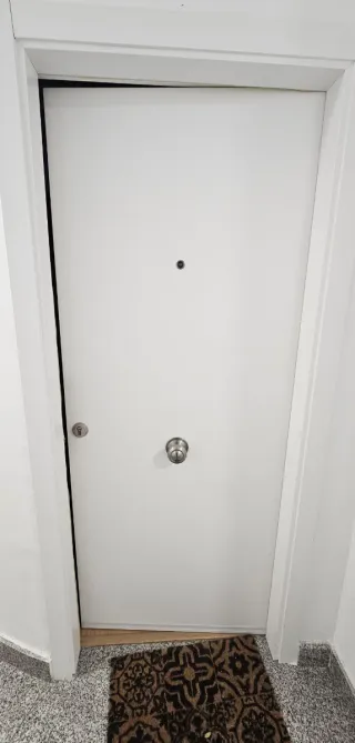 Puerta de entrada lisa de color blanco. (A recoger en Ocaña) ESTÁ DESMONTADA Y LISTA PARA SU TRANSPORTE. REGALO EL MARCO DE LA PUERTA Y TORNILLERÍA SOLO NECESITAS RECOGERLA Y PONERLA EN UN NUEVO HOGAR. - Se vende con manilla, cerradura y cuatro copias de llaves. - Diseño moderno y minimalista. - Acabado liso. - Color blanco.