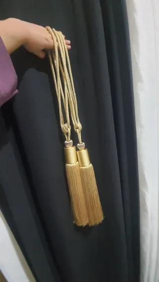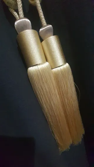 Pack de dos abrazaderas decorativas para cortinas en color dorado. - Diseño elegante con borlas. -Accesorio lujoso para tus cortinas.