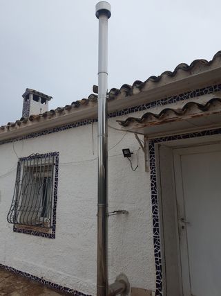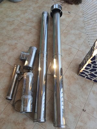Tubería acero inoxidable en perfecto funcionamiento. Medidas 80int,130ext. Unos 5 mts en total. Con soportes y abrazaderas también en inox. Se puede ver sin compromiso.