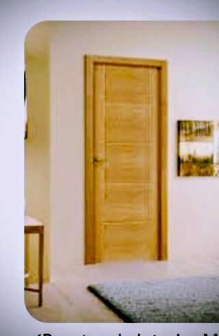 Preciosa puerta de habitación de Leroy Merlin. Se encuentra en buen estado. - Color marrón oscuro. - Material: madera aglomerada. - Incluye manilla metálica.