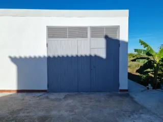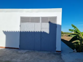 Se venden puertas de chapa, ideales para garaje o almacén. Son robustas y funcionales. Medidas 3.23 de ancho 2.94 de alto - Material: Chapa. - Color: Gris claro y gris oscuro. - Diseño: Paneles verticales.