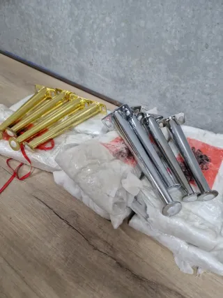 Juego de patas nuevas para muebles, disponibles en dorado y plateado. Paquetes de 4 patas. Tengo más de las que se ven en las fotos. Y también otros modelos. - Patas doradas - Patas plateadas Precio por 1 pack de 4 patas