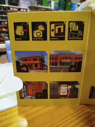 Medidor de distancia Stanley en su empaque original. - Diseño compacto y moderno. - Incluye cable de carga.
