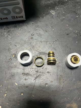 Pack de cuatro acoples multicapa de 16mm. Piezas de fontanería para instalaciones. - Material: Latón y polímero. - Diámetro: 16mm.