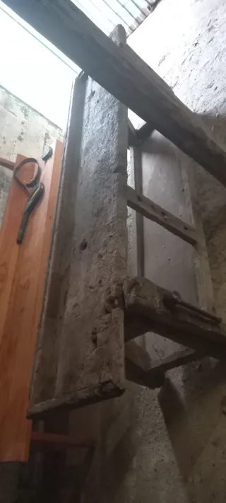 Escalera metálica antigua de dos tramos. Ideal para trabajos de altura en espacios reducidos. - Fabricada en metal resistente. - Presenta signos de óxido y desgaste por el uso. - Se compone de una plataforma superior y una escalera de acceso. - Perfecta para proyectos de bricolaje o jardinería. Se venden por juntas o separadas 150€ cada una