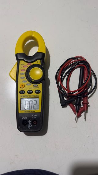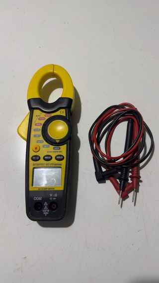 pinza amperimétrica TROTEC BE40 MultiMeasure Basic en excelente estado. Muy poco uso, funciona perfectamente y se entrega con sus puntas de prueba originales. Características: • Medición de corriente alterna (AAC) hasta 1000A • Medición de tensión AC/DC • Medición de resistencia (Ω) • Función continuidad con avisador acústico • Función MAX y HOLD • Auto apagado • Categoría de seguridad CAT III 600V Ideal para electricistas, técnicos o bricolaje. Incluye: • Pinza amperimétrica • Cables/puntas de medición
