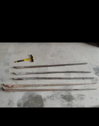 Se venden perpales de hierro macizo, ideales para trabajos de cantera, minería, construcción o demolición. Fabricados en acero de alta resistencia. Me quedan dos cortas de 150cm y una larga de 170mm. Herramientas tradicionales, perfectas para hacer palanca, romper piedra o mover cargas pesadas. En buen estado de uso. Dispongo de 3. 120€ cada una. Oportunidad única para profesionales o coleccionistas de herramientas clásicas. pinzas barras de palanca albañil hormigon madera postes vigas forjado tejado material agricultura agricultor agricultura barrenadora perforadora pata de cabra palanquilla montaje estructuras hormigon