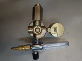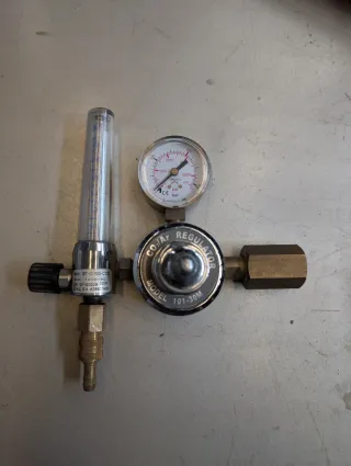 Regulador de presión para CO2 y Argón. - Modelo: 101-30M - Manómetro con escala en PSI y bar - Cuerpo de latón - Conexión de entrada y salida estándar