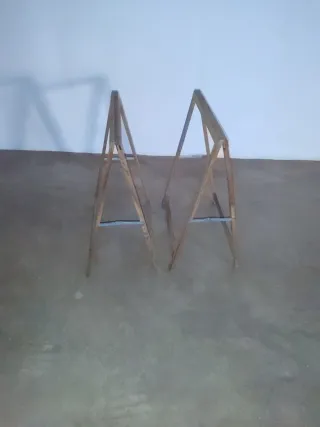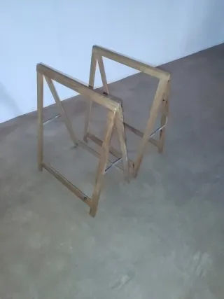 Par de burras de madera, ideales para soportar cargas o como base de trabajo. - Fabricadas en madera. - Estructura robusta en forma de A. Altura 73,5 abiertas, ancho 59'5 cm.