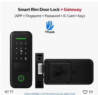 Cerradura inteligente TT Lock R7 con gateway incluido. Permite acceso mediante APP, huella dactilar, contraseña, tarjeta IC y llave física. - Modelo: R7 TT - Incluye Gateway - Múltiples métodos de acceso - Dirección universal (derecha/izquierda ajustable)
