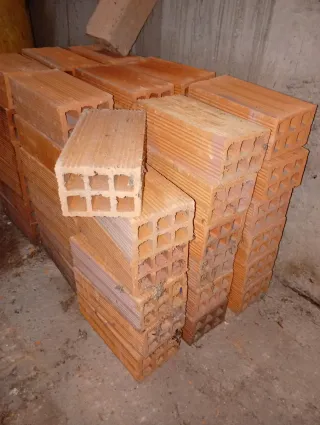 Ladrillos cerámicos huecos, ideales para proyectos de construcción. Precio por unidad. Se dispone de 54 unidades - Material: Cerámica. - Diseño: Hueco con múltiples perforaciones.
