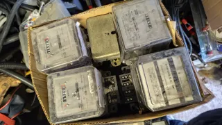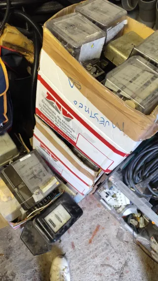 Lote de contadores de luz antiguos, ideales para coleccionistas o proyectos de restauración. Por unidad 8 y algo precio por lotes o todos - Varios modelos y marcas visibles. - Carcasa de plástico y metal.