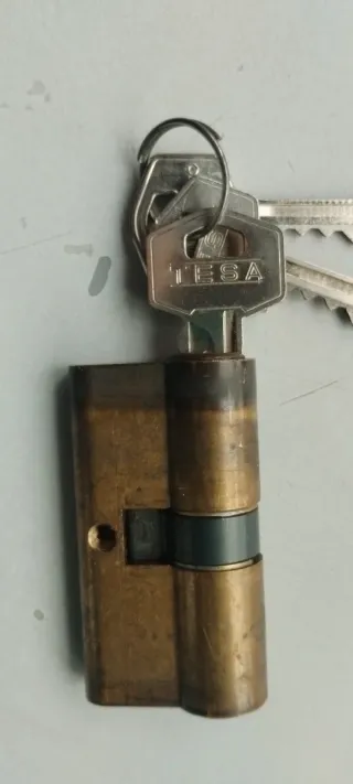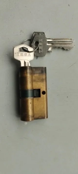 Bombín de cerradura TESA con dos llaves. - Bombín de latón. - Incluye tres llaves TESA.