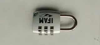 Candado de seguridad IFAM con combinación de tres dígitos. Ideal para asegurar pertenencias. - Cuerpo metálico plateado. - Combinación numérica. - Grillete de acero.