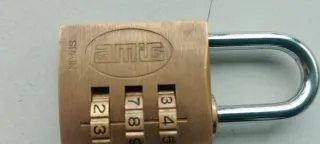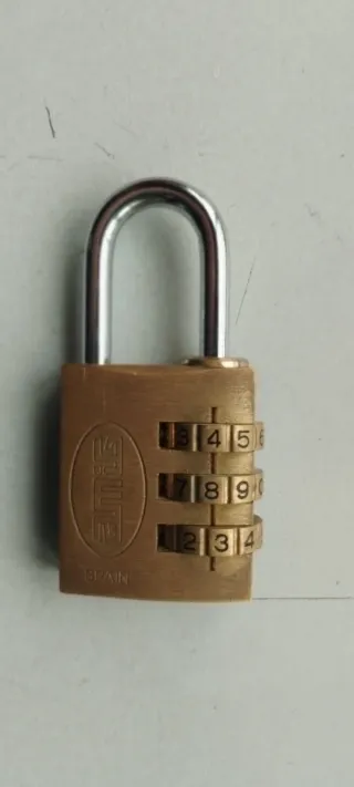 Candado de latón con cierre de combinación de tres dígitos. Ideal para asegurar pertenencias. - Cuerpo de latón. - Ruedas de números para combinación.
