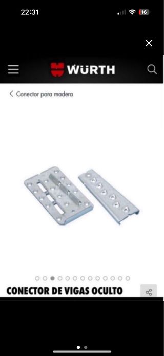 7 Conectores de vigas ocultos de la marca Würth. - Material metálico. - Diseño para unión de vigas.