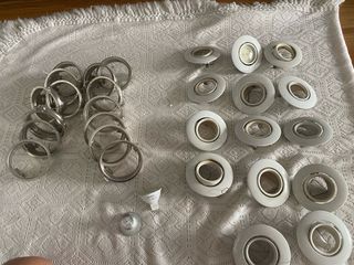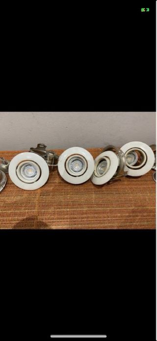 Lote de 14 focos empotrables circulares. Son orientables y de color blanco.