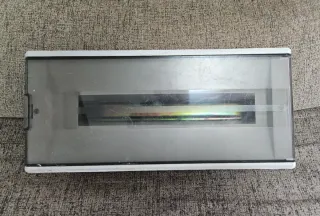 Cuadro eléctrico de superficie o caja de distribución para módulos automáticos. 14 DIN Medidas: 37,5 cm x 17 cm x 9,5 cm - Material: Plástico y metal. - Color: Gris y blanco. Está diseñado para albergar interruptores automáticos, diferenciales u otros dispositivos de protección eléctrica. Cuenta con una tapa frontal abatible o transparente para proteger los componentes y permitir la visualización de los mismos. Dispone de un carril DIN metálico interno donde se fijan los diferentes módulos de protección.