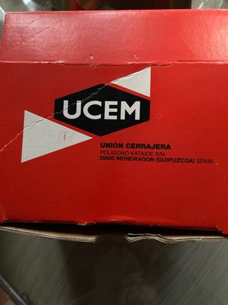 Cerradura de la marca UCEM, fabricada por Unión Cerrajera. - Modelo: Polígono Kataide S/N. - Ubicación: 20500 Mondragón (Gipuzkoa), Spain. - 5 Llaves