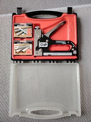 Grapadora Powerfix, en perfectísimo estado, tal como se puede apreciar en las fotografías. Con estuche y dos cajas de 500 grapas cada una. - Grapadora Powerfix Profi. - Dos cajas de grapas (una de 10mm y otra de 8mm). - Maletín de transporte.