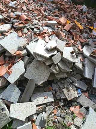 se regala escombro para quien lo quiera para rellenos, etc. Restos de materiales de construcción para retirada. - Ladrillos rotos. - Tejas de cerámica. - Fragmentos de cemento y baldosas.