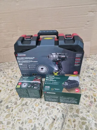 Se vende kit de pistola de impacto Parkside Performance. - Incluye maletin de transporte, pistola de impacto, batería de 4Ah, cargador rápido y vasos de impacto. Nuevo sin estrenar.