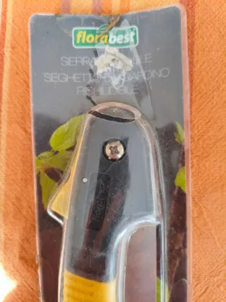 Sierra plegable de la marca Florabest, ideal para trabajos de jardinería. - Mango ergonómico de color amarillo. - Hoja de sierra de calidad, ver indicaciones en paquete está sin abrir aunque se ve paquete roto.