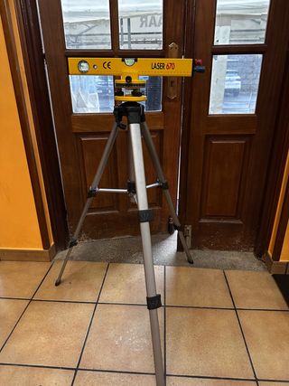 Nivel láser modelo 670, ideal para trabajos de medición y alineación. Incluye trípode. -Utilizado una vez -Esta como nuevo - Nivel láser amarillo. - Trípode plateado ajustable.