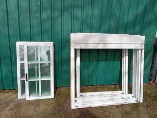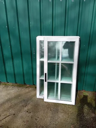 Se vende lote de ventanas de aluminio, ideales para proyectos de construcción o renovación. - Marco de aluminio blanco. - Cristales con divisiones. - Una ventana corredera.