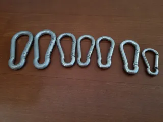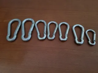 7 mosquetones de diferentes tamaños y resistencia.