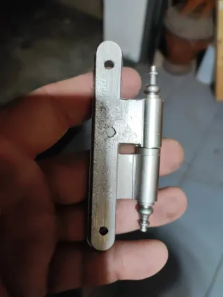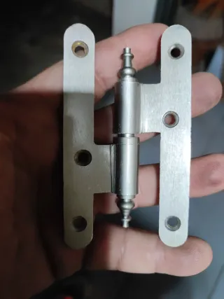 Bisagra decorativa fabricada en acero inoxidable.11ud. 4€/una, 35€/ 11 en caja. - Diseño con remate ornamental. - Acabado plateado mate.