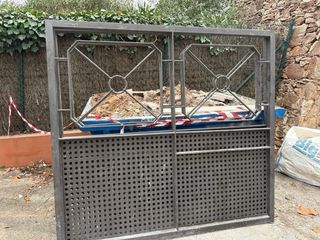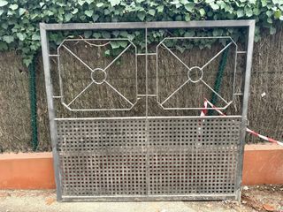 Se venden dos puertas de hierro forjado, ideales para un portal o entrada. - Diseño moderno con rejas cuadradas en la parte inferior. - Parte superior con motivos decorativos. - Material: Hierro. -1,90 de anchu por 1,75 de altura