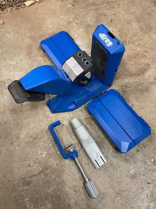 Sistema de juntas Kreg para carpintería. - Incluye plantilla Kreg. - Incluye abrazadera Kreg. - Incluye depósito de virutas Kreg.
