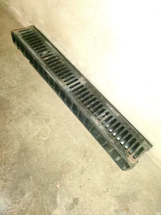 Vendo 5 canales de desagüe de polipropileno negro con rejilla de fundición Recifix Faserfix. -Ideal tanto para interior como exterior. -Material resistente y duradero (heladas, rayos UV, etc) -Excelente calidad, transitables con vehículo hasta 25 toneladas. -Medidas 100 cm largo x 16 cm ancho x 14 cm alto (cada una). -Nuevas