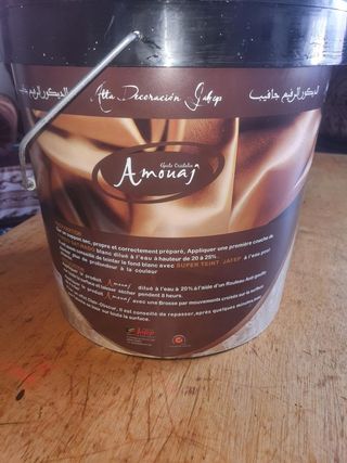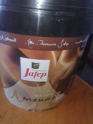 Pintura de acabado satinado para paredes, con un efecto cristalino único. - Marca: Amonaj - Efecto: Cristalia - Acabado: Satinado - Dilución recomendada: 20-25% con agua - Rendimiento: 4-6 m² - Aplicación: Primera capa de fondo blanco, opcionalmente teñido con SUPER TEINT JAFEP. Segunda capa con rodillo anti-goteo o llana de inox para efecto Clair-Obscur.