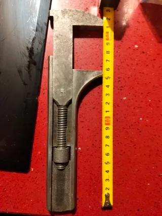 Llave inglesa antigua de dos caras. Se encuentra en buen estado de conservación. En muy buen estado como se puede ver en las fotos - Diseño de doble cara. - Material metálico resistente. Mide de larga 22 cm Y su apertura máxima es de 50 milímetros Es de las que se utilizaban para las tuercas cuadradas Apenas tiene juego Está bien ajustada El precio es de 22 euros