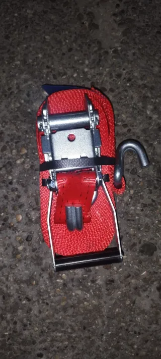 Cincha de amarre con trinquete. Elemento perfecto para asegurar y proteger cargas durante el transporte, evitando que se desplacen o sufran daños. Su uso es fundamental para prevenir accidentes al garantizar que la mercancía permanezca en su lugar de forma segura. Cuentan con un tensor de carraca (trinquete) que permite aplicar una alta tensión a la correa para sujetar pesos considerables. Fabricado con correas de nylon o poliéster, que les otorga gran calidad y resistencia. Posiblidad de mejorar el precio comprando 10 unidades.