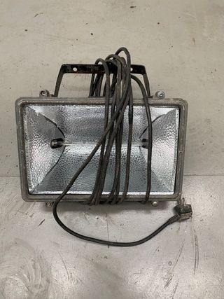 VENDO Foco halógeno de gran potencia, ideal para alumbrado de obras, calles, parcelas, garajes o merenderos. Con cable largo y enchufe tipo schuko. Diseño robusto. Con bombilla en perfecto estado y funcionando. Para voltaje de 220-240V y potencia máxima de 1500W. IP54. Con soporte articulado para su colocación. Medidas y estado según las imágenes