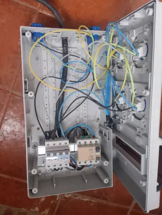 Se vende Cuadro eléctrico versátil que incluye protecciones trifásicas y monofásicas. El cuadro se a utilizado 2 días pero se nos quedaba pequeño. - Merlin Gerin multi9 ID - Amec C32