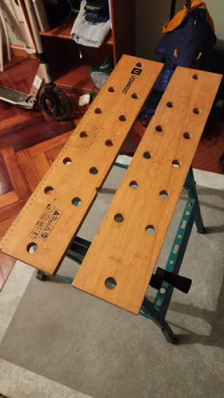 Mesa de trabajo de madera con mordaza, ideal para proyectos. - Material: Madera. - Incluye mordaza. - Buen estado.