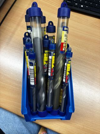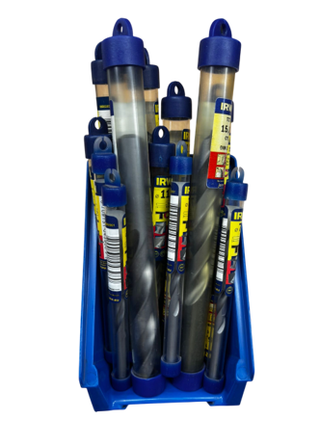 Brocas de la marca Irwin. - Tapas azules con orificio para colgar. Hay diferentes medidas de Broca, pregúnta por el tamaño y su precio.