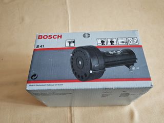 Afilador de brocas de la marca Bosch, modelo S41. - Rango de brocas: 2.5-10 mm. - Ángulo: 118°. - Diámetro: 43 mm. - Velocidad: 2000-3000 RPM.