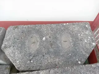 Contrapesos de hormigón para diversos usos. Tengo 14 de 2 tn aproximadamente, 2 de 1 tn y 2 530 kg - Material: Hormigón. - Forma: Rectangular con bordes biselados. - Superficie: Rugosa con incrustaciones.
