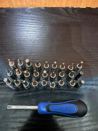 Incluye: 1 destornillador largo plano 2 minis de estrella y plano 3 de estrella 2 de precisión de estrella Puntas de torx/allen/estrella/planos Destornillador para adaptar las puntas
