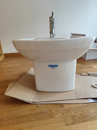 Lavabo de baño de color blanco con pedestal. - Diseño moderno y elegante. - Cerámica de alta calidad. - con grifo korman - con válvula clic clac Tengo dos, los dejo por 45