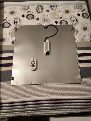 Panel LED para empotrar en el techo. Está en perfecto estado. - Medidas: 59,5cm x 59,5cm. - 3800 lúmenes. - 29.5W de potencia. - Temperatura de color: 4000K. - CRI 80. - Ángulo de haz de luz: 115°. - Vida útil: 15000 horas.